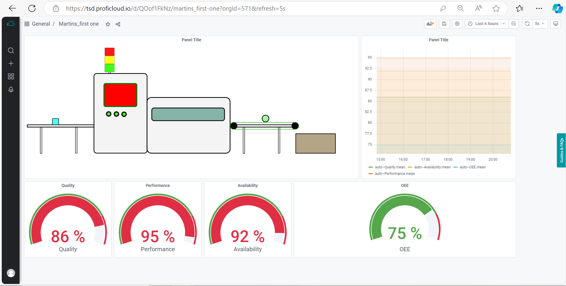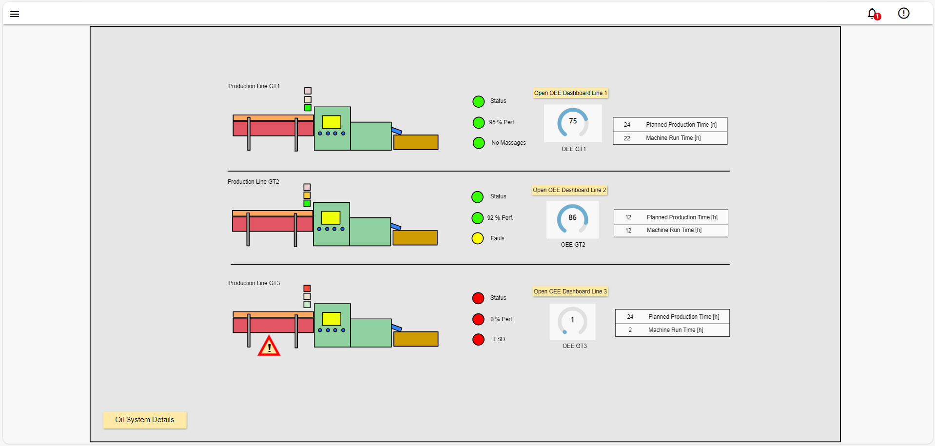 Die vorverarbeiteten, gespeicherten und analysierten Daten werden als Anlagengraphiken im Sinne von einem HMI oder zeitreihenbasiert in einem Dashboardtool visualisiert, so dass historische und aktuelle Anlagenzustände im Sinne von Condition Monitoring verfügbar sind. Auf Basis der Datenanalyse können Abweichungen vom vorhergesagtem Verhalten und detektierte Anomalien in den Daten angezeigt und alarmiert werden. Personen werden per Email, SMS oder Teamsnachricht informiert, falls sich die Maschien, Anlage oder der Prozess nicht ordnungsgemäss verhält.